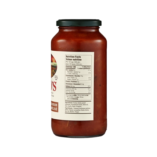 Laissez-vous séduire par la sauce pour pâtes aux oignons caramélisés de Rao's®, une véritable symphonie de saveurs authentiques et raffinées. Chaque pot est un hommage à la cuisine italienne traditionnelle, préparé avec des tomates italiennes mûries sous le soleil méditerranéen, des oignons lentement caramélisés pour une douceur profonde, de l'ail parfumé, et une harmonieuse touche de basilic frais et d'origan.
